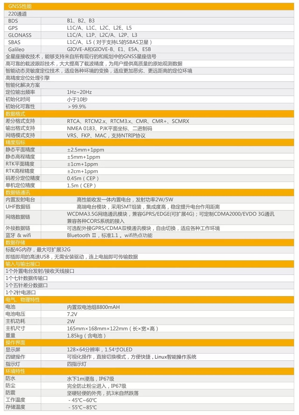 主要性能參數(shù)定位輸出頻率1Hz~20Hz初初始化時間小于10秒初始化可靠性>99.9%